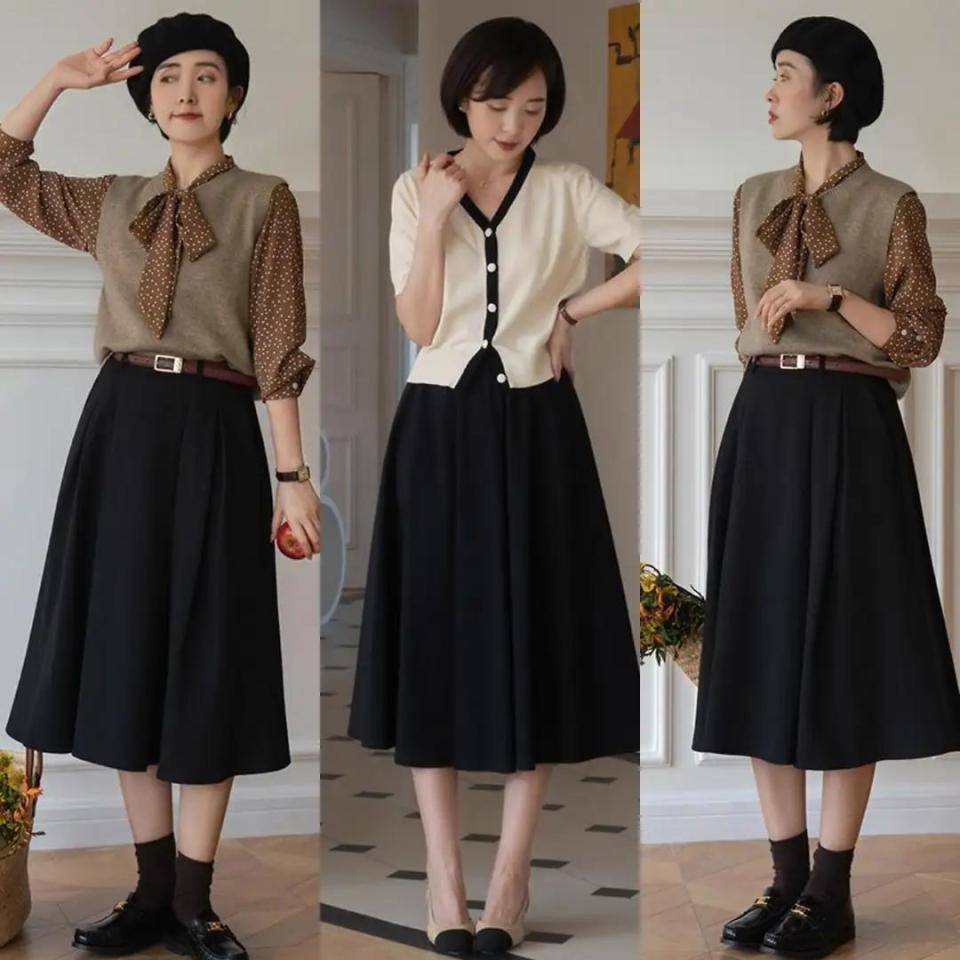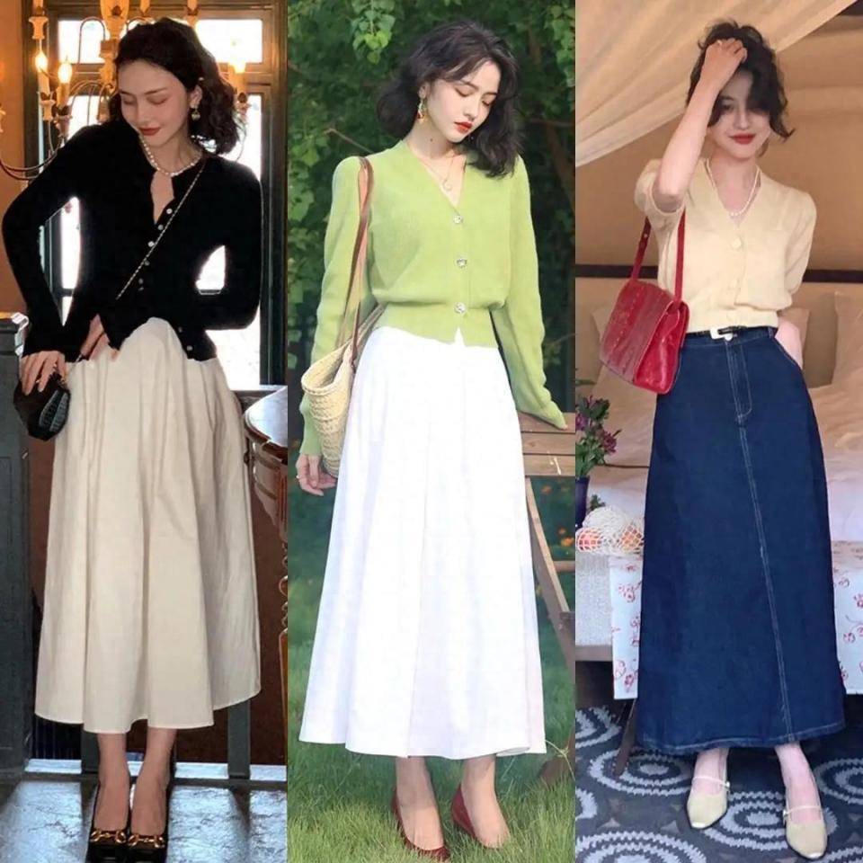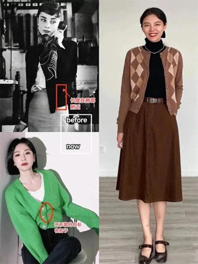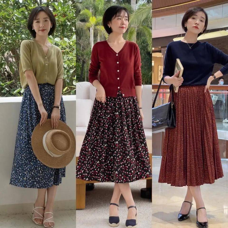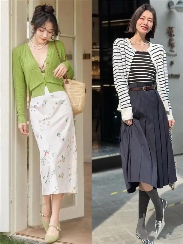 你不知道选择什么样的穿衣打扮,让自己变得更加优雅得体的情况下,我们不妨一起来看一下时尚博主们的穿搭示范,例如下面这3套直接选择短款的针织开衫,搭配上伞状的半身裙,脚上穿了一双低跟的高跟鞋,这样的穿搭优雅得体。