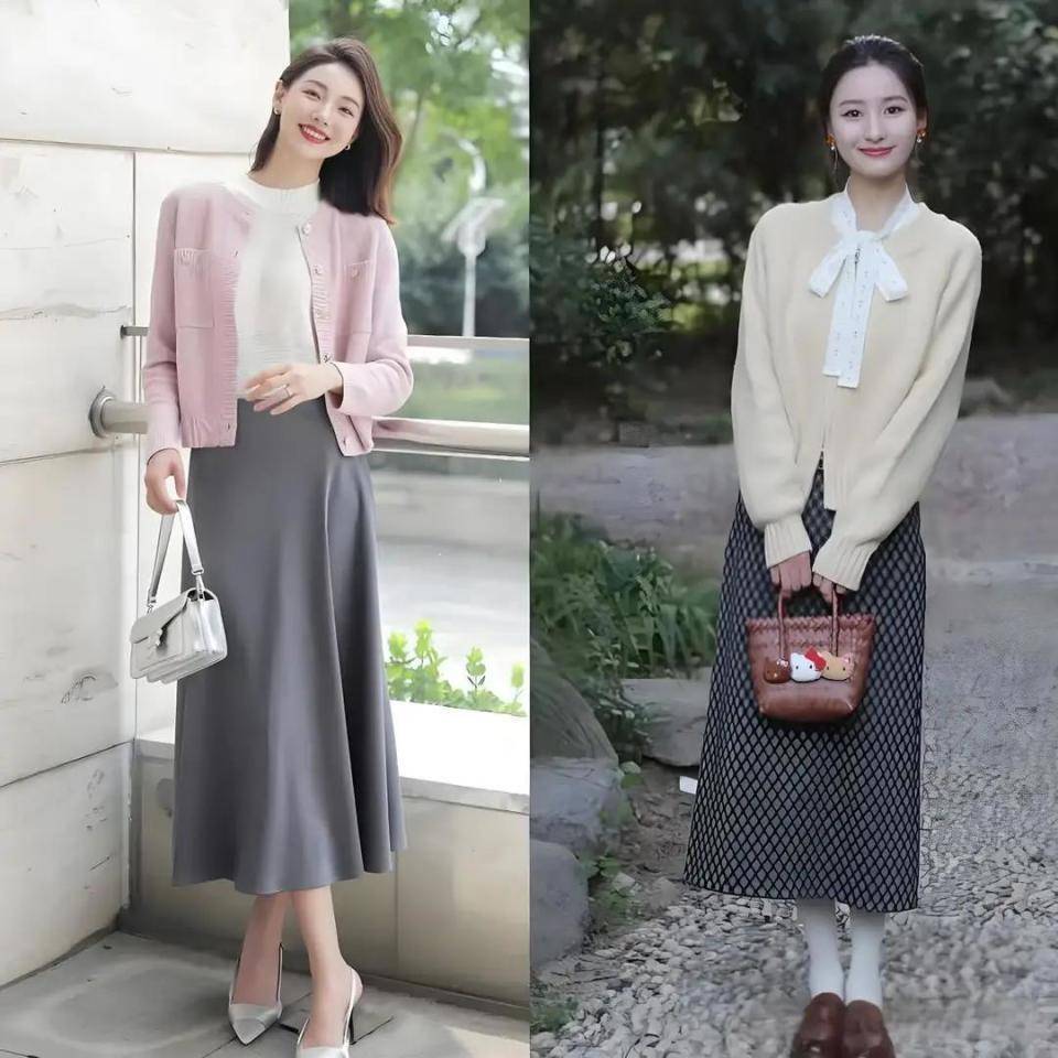 ③:织开衫搭配半身裙