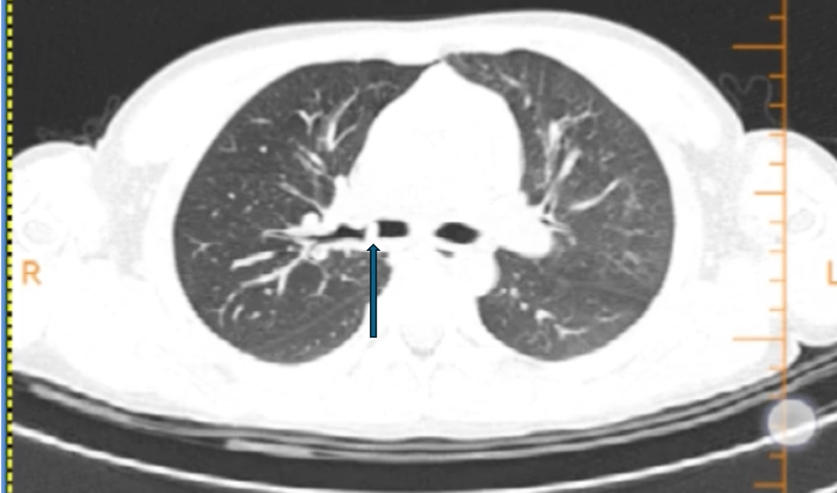 该院呼吸科总住院医师、杨迪元副主任医师认真查阅了乐乐的胸部CT片后认为,CT上显示的这个阴影位置特殊,一般呼吸道异物不会停留在此。