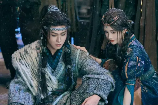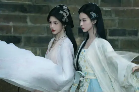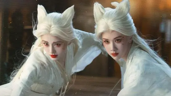 耗资3亿打造的视觉盛宴里,光是鞠婧祎就有34套华服造型,融合战国元素与非遗工艺,手工鳞片装饰、白发狐耳战损妆等细节拉满,每一套都惊艳出圈;陈都灵则以清冷蓝衣搭配破碎感造型,完美贴合狐族祭司的冷冽气质,两人同框的画面,堪称壁纸级水准。